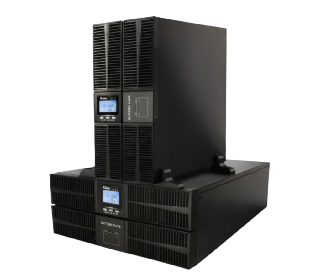 UPS Kaise Rack Tower (monofásicas) en potencias 1 kVA/900 W, 2 kVA/1.8 kW, 3 kVA/2.7 kW y 6–10 kVA (6–10 kW), con baterías internas que entregan 5–7 minutos de autonomía a plena carga y opción de bancos externos para extenderla según tu necesidad. Formato rack/torre para integración ordenada en gabinete, con acceso a fichas técnicas y manuales por modelo.